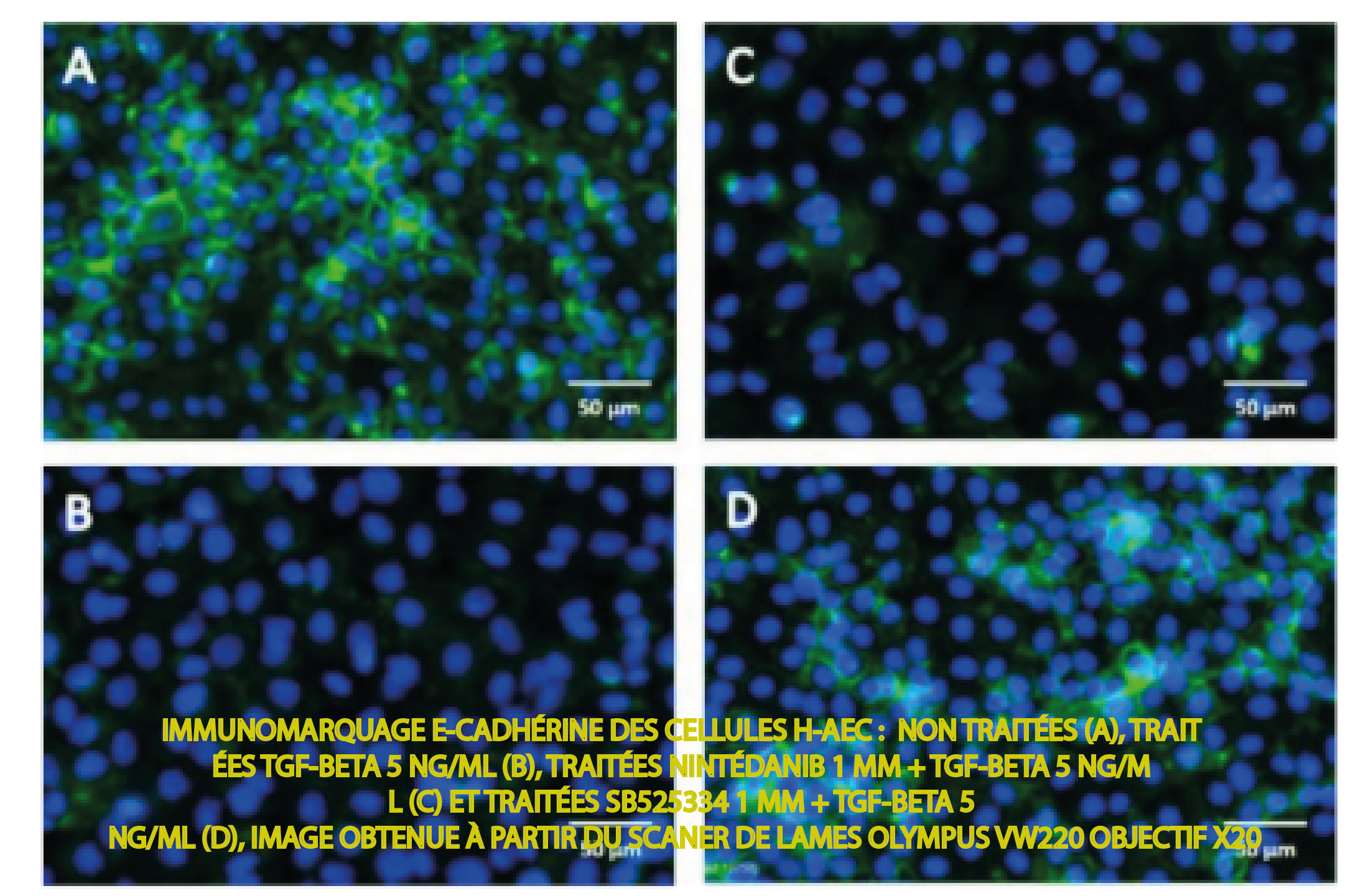 - ICC (imunocytochimie) sur cellules (stage BUT2 – laboratoire de recherche), réaliser dans le cadre de l'étude de la fibrose